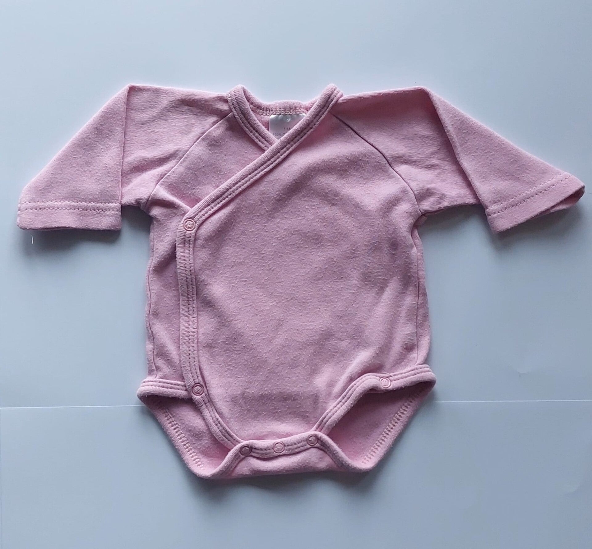 Body croisé à manches longues en coton doux, coloris rose tendre.