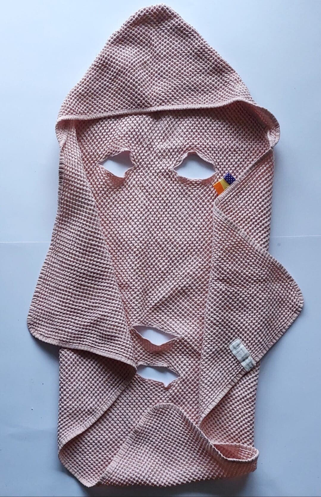 Cette assise en tissu gaufré rose poudré s’installe facilement dans la poussette grâce à ses ouvertures pour les sangles de sécurité.